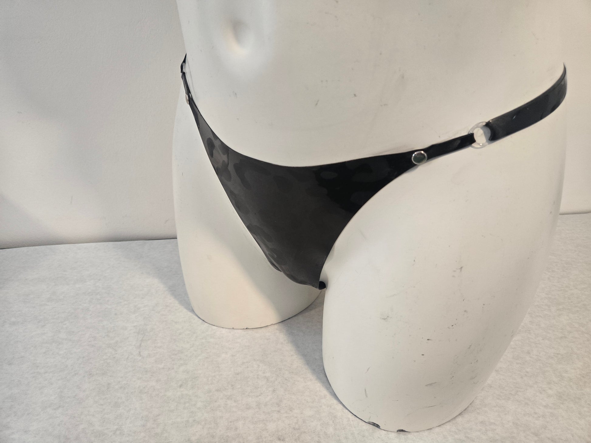 Experience the daring allure of the B-Leopard Thong! Crafted from fully laser cut and engraved latex rubber, this thong features adjustable sliders for a perfect fit. Embrace your confidence and express your bold style—this piece is designed to make you feel empowered and unforgettable!