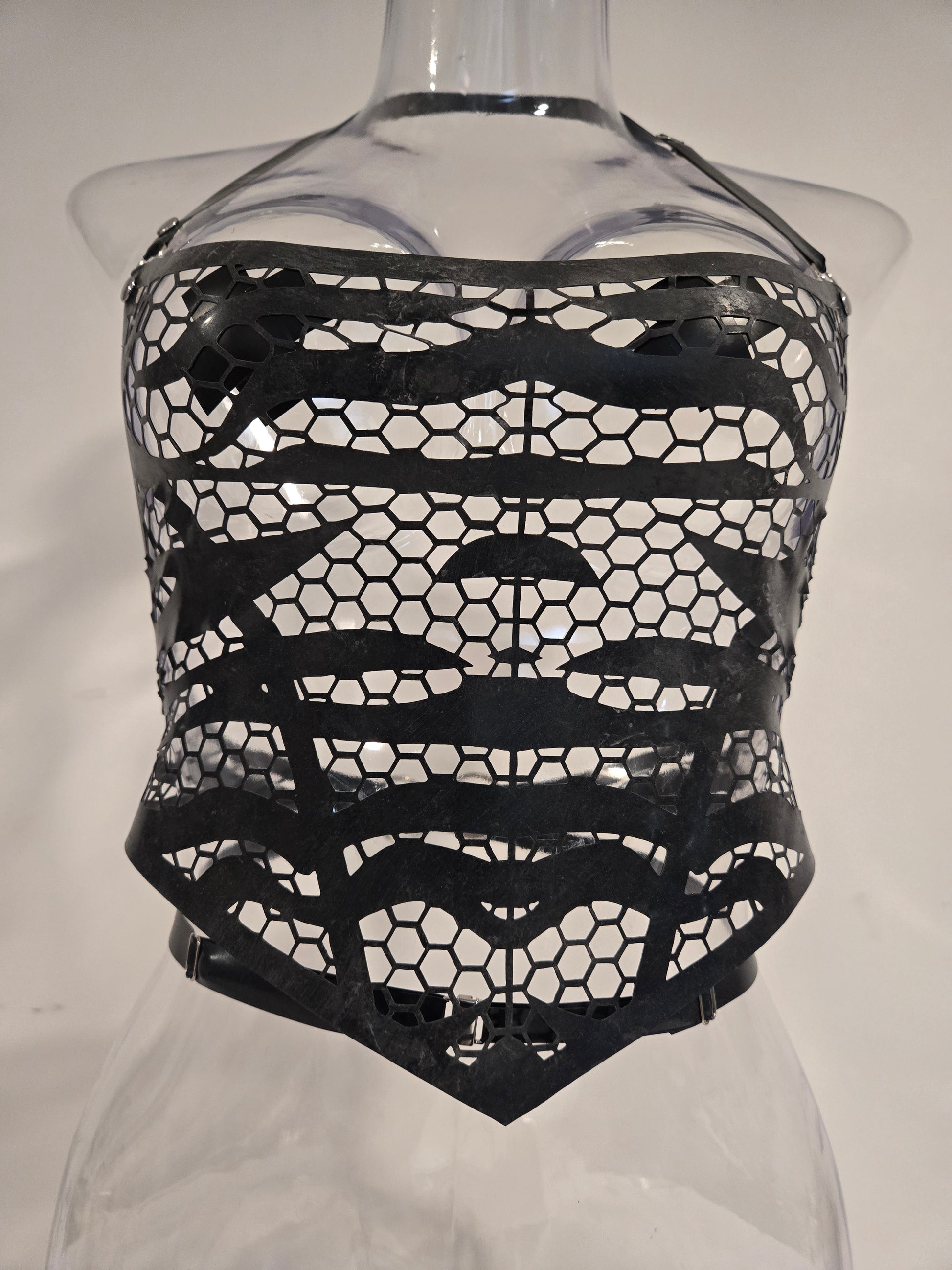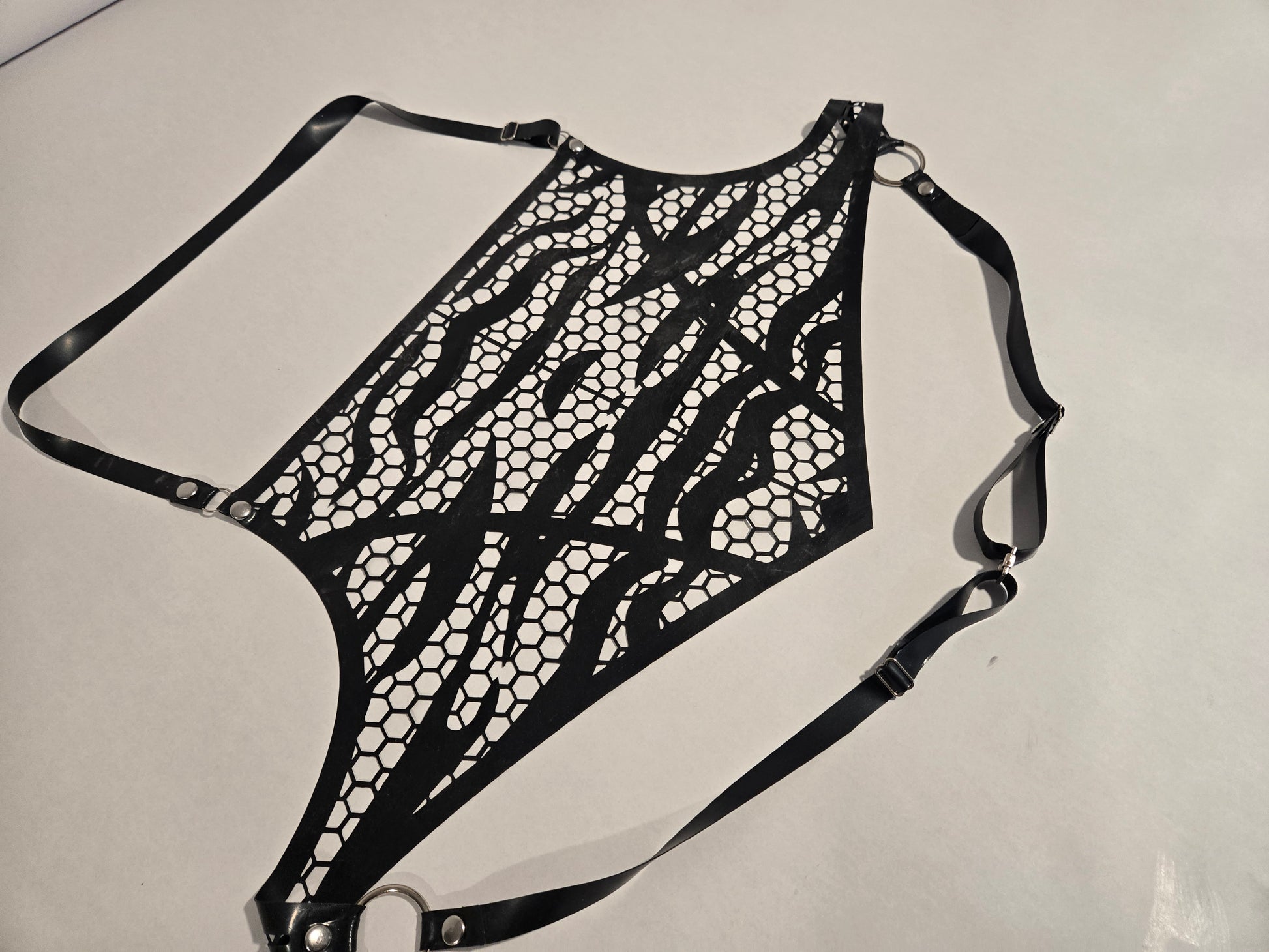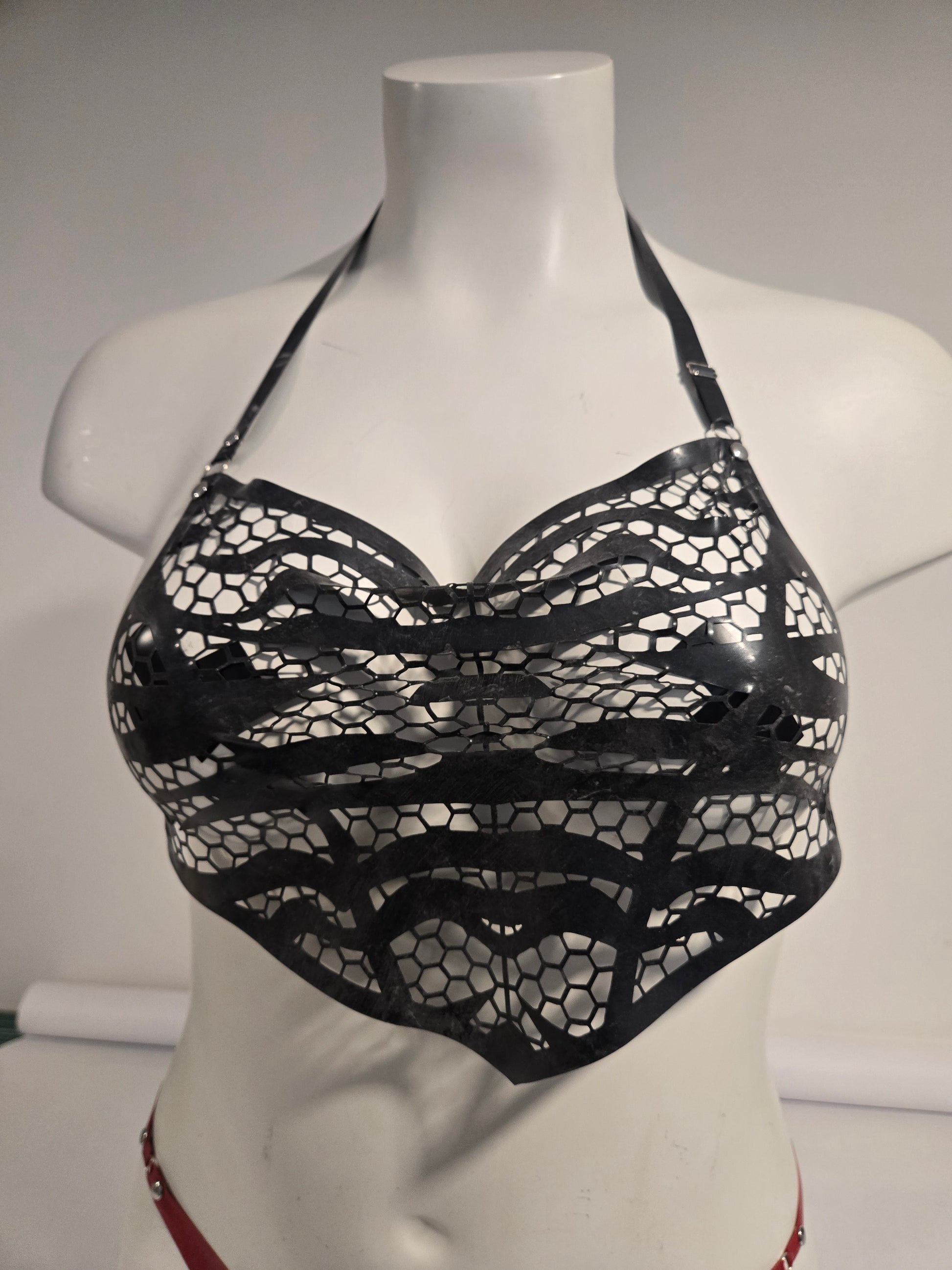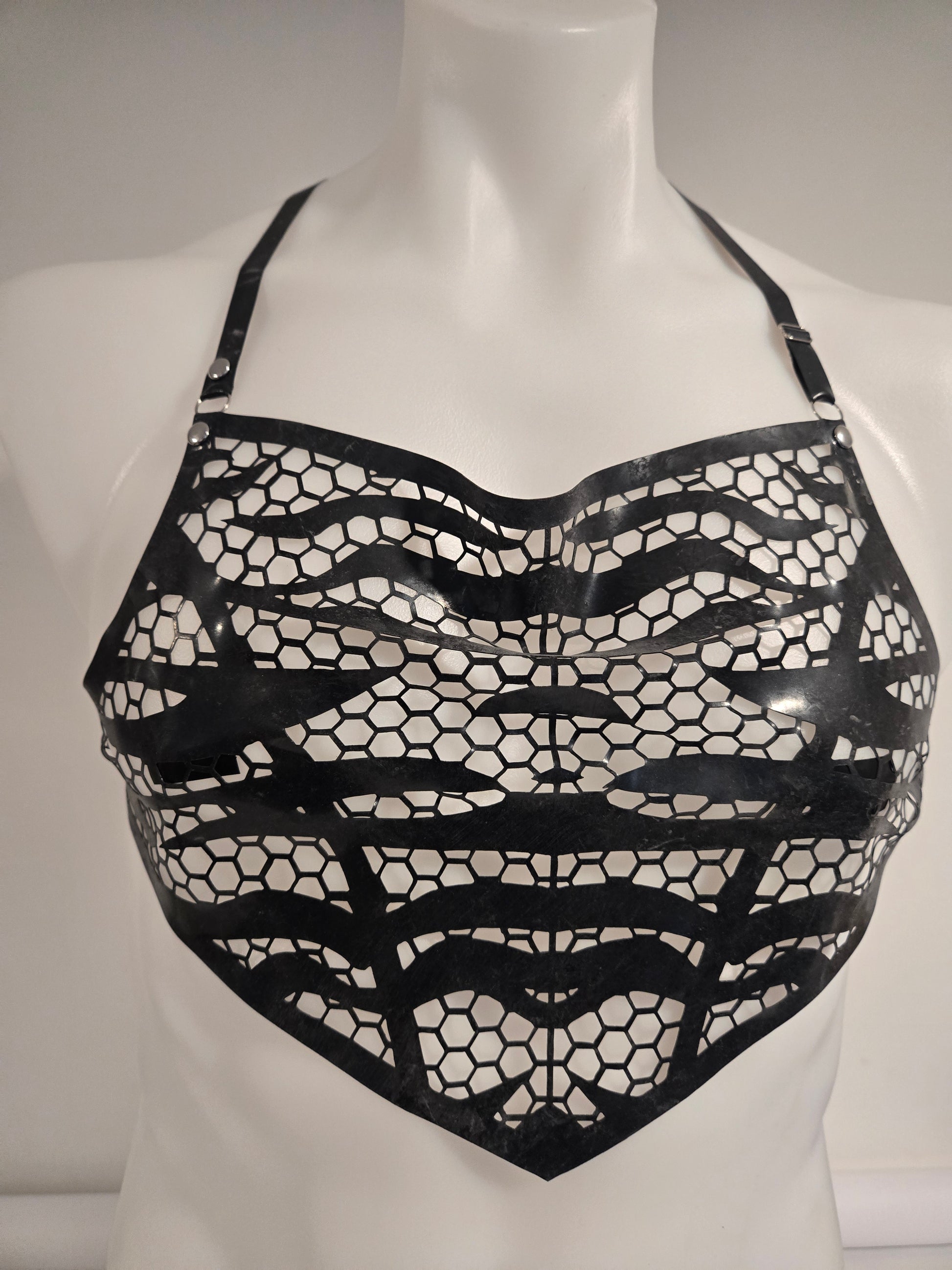The Zebra Net Top is a versatile and stylish addition to any wardrobe. Made with latex and fully adjustable to fit all body types, this top offers maximum comfort and a flattering fit. Perfect for any occasion, it's a must-have for those looking to make a statement.